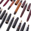 “Duofold”, “The Burnham” etc. A selection of 15 fountain pens of coral red, burgundy and black resin with golden details. 13 with pen nibs of 14k gold, two with pen nibs of gilded metal. L. 12.3–14.3 cm. (15)