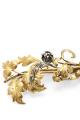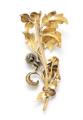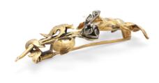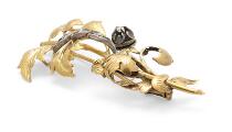 Diamantbroche af 17 kt guld og sølv i form af gren med blade prydet med old mine-cut diamanter. Vægt ca. 8,5 g. L. 5,8 cm.