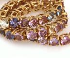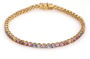 Safirarmbånd af 18 kt. guld prydet med talrige facetslebne multifarvede safirer på i alt ca. 6.56 ct. Vægt ca. 10,5 g. L. 18 cm.