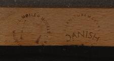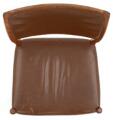 Fremstår med alders- og brugsslitage, herunder ridser, mærker og hak. Skind med pletter, smuds og krakerleringer. Skind på et sæde med reparation.