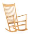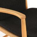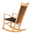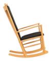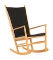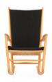 “J 16”. An oak rocking chair, seat with woven papercord, loose cushions in seat and back upholstered with dark wool. Designed 1944. Manufactured by Fredericia Furniture.