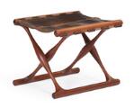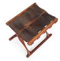 “Gold Hill Chair”. A solid teak folding stool, seat suspended with original brown leather. Model PH 41. Manufactured by Poul Hundevad, Vamdrup. H. 37 cm.
