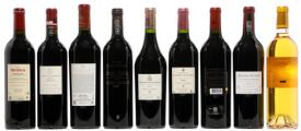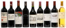 Collection case contains one each of the following bottles: 1x Petrus - 1x Lafite Rothschild - 1x Mouton Rothschild - 1x Margaux - 1x Haut-Brion - 1x La Mission Haut-Brion - 1x Cheval Blanc - 1x Ausone - 1x Yquem