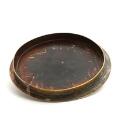 Chipping at the rim and one chip at the side/rim of the bowl. Dirty inside. The lid with partly loose rim. Marks and scratches at the lid. Wear of use.