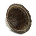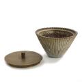 A fluted stoneware bowl, decorated in bluish glaze, patinated brass lid. Signed monogram 119. H. 8. Diam. 14 cm.