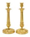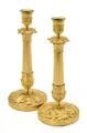 A pair of French 19th century gilt bronze candlesticks, fluted stems on round bases. H. 31 cm. (2)