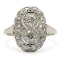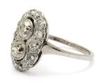 Diamantring af 14 kt. hvidguld prydet med talrige old-cut diamanter på i alt ca. 1.36 ct. Farve: G-J. Klarhed: VVS-P1. Vægt ca. 3,5 g. B. 17 mm. Str. 55.