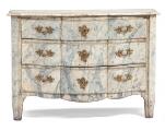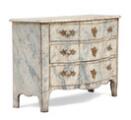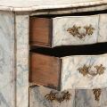 Svensk barok kommode af marmoreret træ, svungne sider og front med tre skuffer, beslag af forgyldt bronze. 18. årh.s første halvdel. H. 84. B. 119. D. 56.