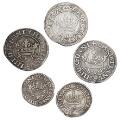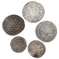 Christian IV, 8 skilling 1620, 1621, 1620, H 114A, C og D, 4 skilling 1620 og 1621, H 115A og C, i alt 5 stk.