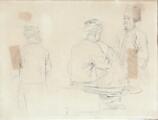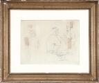 “En siddende græker i hel figur; to stående i halv”. A study of three Greek men. Pencil on paper mounted on paper. Unsigned. Sheet size 20.5×27 cm.