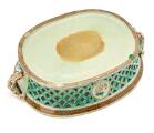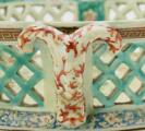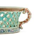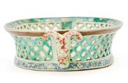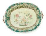 Ostindisk kurv af porcelæn, dekoreret i emaljefarver. Qianlong 1736–1795. L. 32 cm.