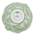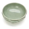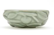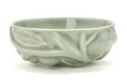 A circular stoneware bowl, the outside modelled with fruits and leaves. Decorated with Celadon glaze. Signed SALTO, 20677. Royal Copenhagen. Made 1967. H. 5.5 cm. Diam. max. 14.5 cm.