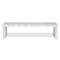 “Quaderna” bench of plywood sheets covered with white laminate with graphic black pattern. Designed by the design group Superstudio approx. 1970. Manufactured and marked by Zanotta. H. 39 B. 41,5 L. 149,5 cm.