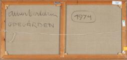 “Ødegården”, 1974. Sign. monogram 74 samt sign. på bagsiden Albert Bertelsen med titel og årstal. Olie på lærred. 60×130.