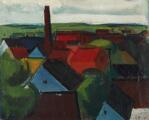 Bybillede. Signeret og dateret SE, 37. Olie på lærred. 56×70 cm.