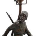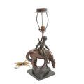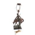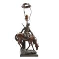 A patinated metal table lamp designed with cossak on horseback. Early 20th century. H. incl. mountings 65 cm.