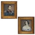 Et par portrætter af Frederik Vilhelm 3. af Preussen og Charlotte af Preussen. Usigneret. Gouache på papir. Lysmål hver 6×5,5. (2)