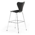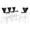 “The Seven Chair”. Set of four steel bar stools. Seat and back of black lacquered wood. Model 3197. Manufactured and marked by Fritz Hansen, 2023. (4)