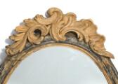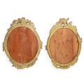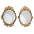 Et par ovale italienske spejl af bemalet og udskåret træ. Rokoko form, 19. årh.s anden halvdel. H. 105. B. 77. (2)