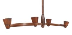 Par loftlamper af massiv mahogni, svungen stamme hver med fire fatninger. 1940'erne. H. 82. L. 98. B. 25. (2)