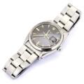 Oysterdate af stål, ref. 6694. Mekanisk værk med manuelt optræk og datovisning, kaliber 1215. 1963. Ø 34 mm. “Oyster” lænke af stål.