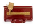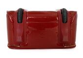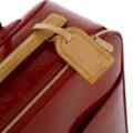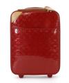 Kuffert af rødt monogram vernis lakeret læder med brune læderbesætninger, gyldne beslag, kort læderhank, udtrækkeligt håndtag, en udvendig forlomme, en indvendig lynlås lomme, velcrolukning og rødt for. Navneskilt medfølger. H. 46 x B. 36 x D. 18 cm. 2009.
