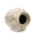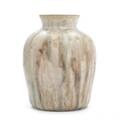 Vase af stentøj dekoreret med lys og grågrøn løbeglasur. Sign. monogram 1926, 21. Antageligt udført hos Københavns Stentøjsbrænderi. H. 16.