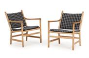 “CH 44”. Et par lænestole med stel af eg og sæde af flettet papirgarn, løse hynder med ternet uld. Designet 1965. Udført hos Carl Hansen & Søn. (2)
