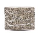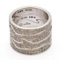 “Fusion” fire-delt diamantring af 18 kt. hvidguld prydet med talrige brillantslebne brune diamanter på i alt ca. 3.62 ct. Samlet vægt ca. 20,5 g. Str. 56. Georg Jensen efter 1945. (4)