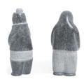 To figurer af udskåret fedtsten i form af grønlansk mand og kvinde i sælskindsdragter. Sign. N.Z. H. 9,5 og 10. (2)