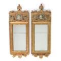 Et par gustavianske spejle af forgyldt træ, udskåret med gennembrudt ornamentik og profilportrætter. Usigneret. Sverige, 18. årh.s slutning. H. 82. B. 30. (2).