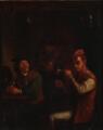 Interior from a tavern with three men. Unsigned. Inscribed Jan V. Kessel on the plaque. Oil on cobber. 24×19.5 cm.