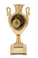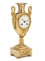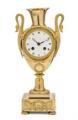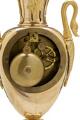 Fransk empire vaseur af forgydt bronze, skive af hvid emalje med sorte romertal. 19. årh.s begyndelse. H. 33. B. 17. D. 9.