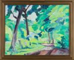 Landskab med grønne træer. Signeret Th. P. Olie på lærred. 50×65 cm.