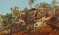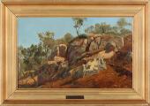 A rocky scene from Capri. Signed monogram Capri. Oil on paper mounted on canvas. 27×43 cm.
