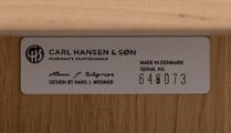 Dining table of solid oak with extension, two extra leaves og black lacquered wood. Model CH 337. Manufactured and marked by Carl Hansen & Søn. H. 72 cm. L. 140/260 cm. W. 115 cm. (3)