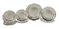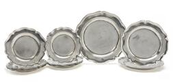 Later supplemented with six silver plates, uniform the above mentioned, only difference is a tiny profile on the reverse of the dishes. Maker's mark Frese, fineness 13, presumably referring to the silversmith family Frese in Itzehoe. Second quater-19th century. Weight 3,215 g. Diam. 24.5 cm. (14)