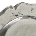 Five German silver plates, one engraved on the reverse of the rim monogram CL and No 1. Maker Emanuel Gottfried Meisgeyer, Augsburg 1763–1765. Weight 2,649 g. Diam. 24.5 cm.