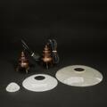 “PH-3/2” og “PH-2/2”. Reservedele bestående af to fatningshuse af bakelit. Skærm holdere mærket “patented” samt hhv. “PH-3/2” og “PH-2”. O-3 overskærm, O-2 overskærm samt s-2 bundskål af matglas. Udført hos Louis Poulsen, 1930'erne. (5)