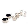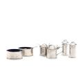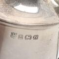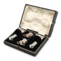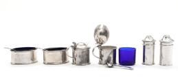 An English sterling silver Plat de menage with case. Made by Barker Brothers Ltd, Birmingham, 20th century. Weight without parts of glass app. 155 g. (9+1)