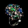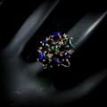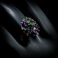 An opal ring with numerous opal cabochon, mounted in rhodium plated sterling silver. Size 55.
