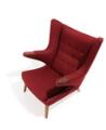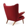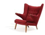 “Bamsestolen”. Øreklapstol med negle af teak og ben af bejdset bøg, betrukket med bordeauxrødt uld. Model AP 19. Designet 1951. Udført hos AP-Stolen, København.