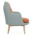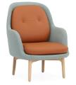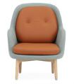 “Fri”. Lænestol med ben af eg. Betrukket med grå nistret uld og rødbrunt skind. Model JH5. Formgivet 2015. Udført og mærket hos Fritz Hansen.