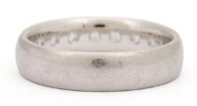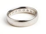 Diamant alliancering af platin, på indersiden prydet med talrige brillantslebne diamanter. Vægt ca. 15,5 g. Str. 68.