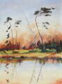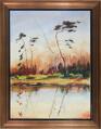 Efterårslandskab fra en sø. Signeret Axel Lind. Olie på lærred. 99×74 cm.