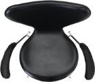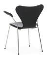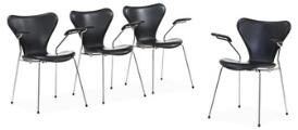 “Syveren”. Sæt på fire armstole med ben af stål. Sæde, ryg og armlæn betrukket med sort skind. Model 3207. Formgivet 1955. Udført og mærket hos Fritz Hansen. (4)