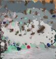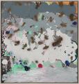 Uden titel, 1991. Signeret og dateret på bagsiden. Mixed media på lærred. 100×95 cm.