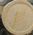 The upper rim with two chips, by one chip also some minor cracks. Bottom with filled firing crack.