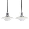 “PH-2/1”. A pair of pendants with chromium-plated sockethouse, multi-layer opal glass shades. Manufactured by Louis Poulsen. Diam. 20 cm. (2)
