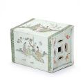 Kinesisk hovedpude af porcelæn dekoreret i farver med figurer og design. 20. årh. L. 23 cm. H. 17 cm.